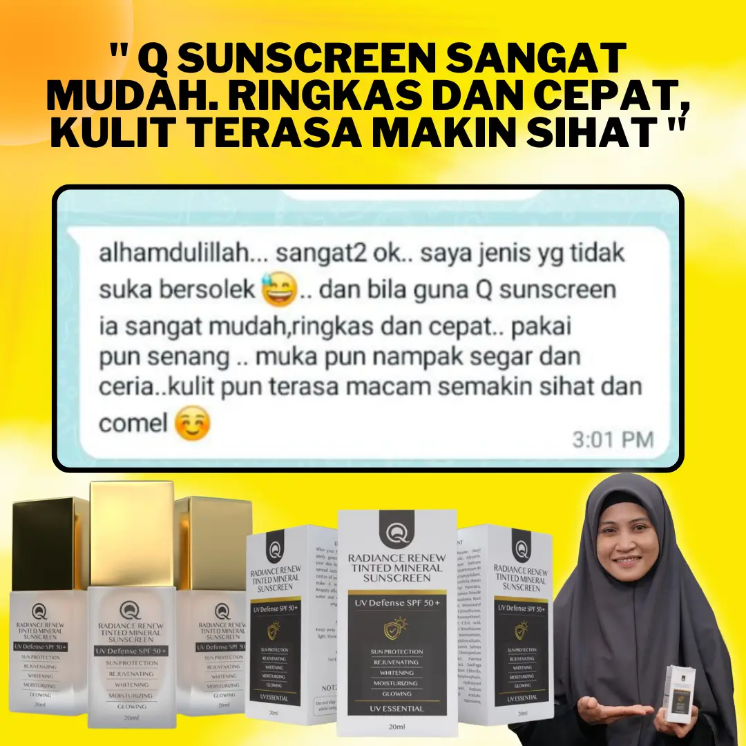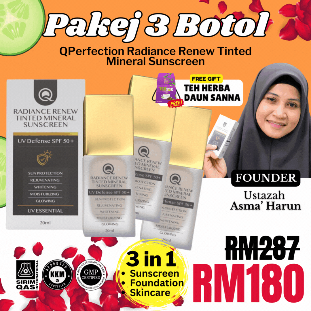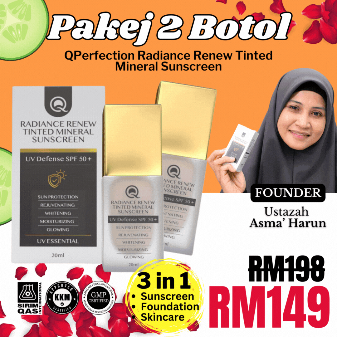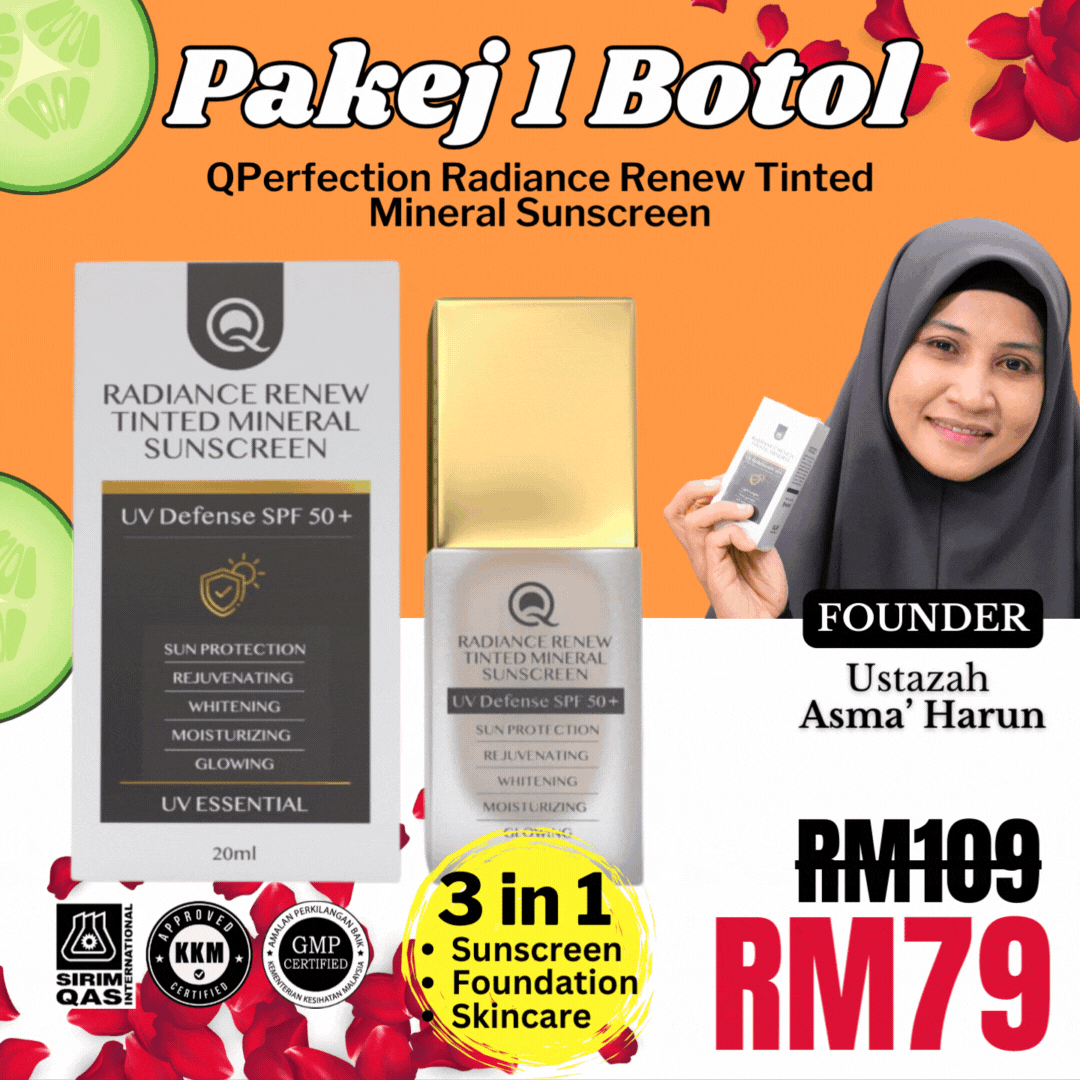 Jangan risau. Anda perlukan SUNSCREEN 3 in 1 dari QPerfection dengan segera! Dapat kebaikan dari cahaya matahari tanpa risikokan kulit.