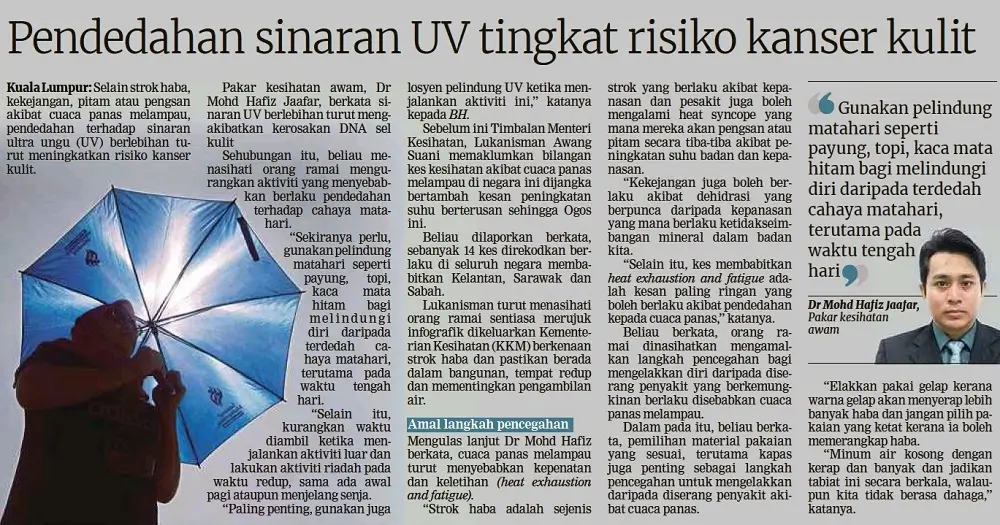 Ramai orang akan cakap. Kita tak pandai jaga muka. Tak pandai jaga kecantikan diri. Terdedah pada sinaran UV berbahaya sehingga boleh kena kanser kulit.