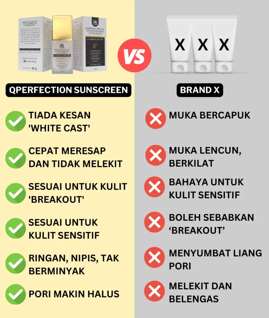 Sesuai kerana QPerfection tidak mempunyai bahan terlarang yang membahayakan kulit anda.